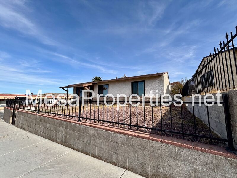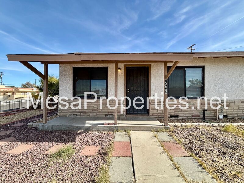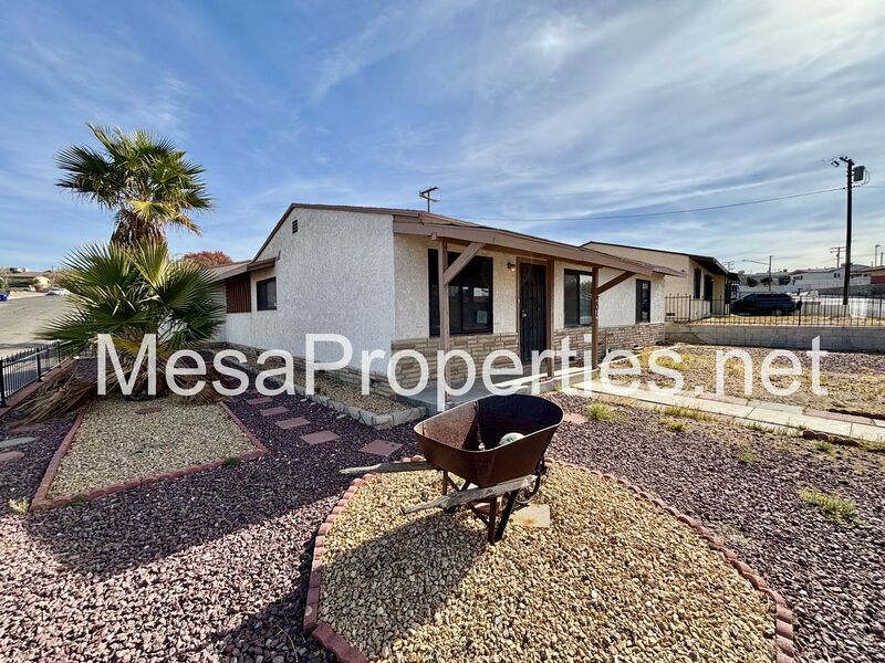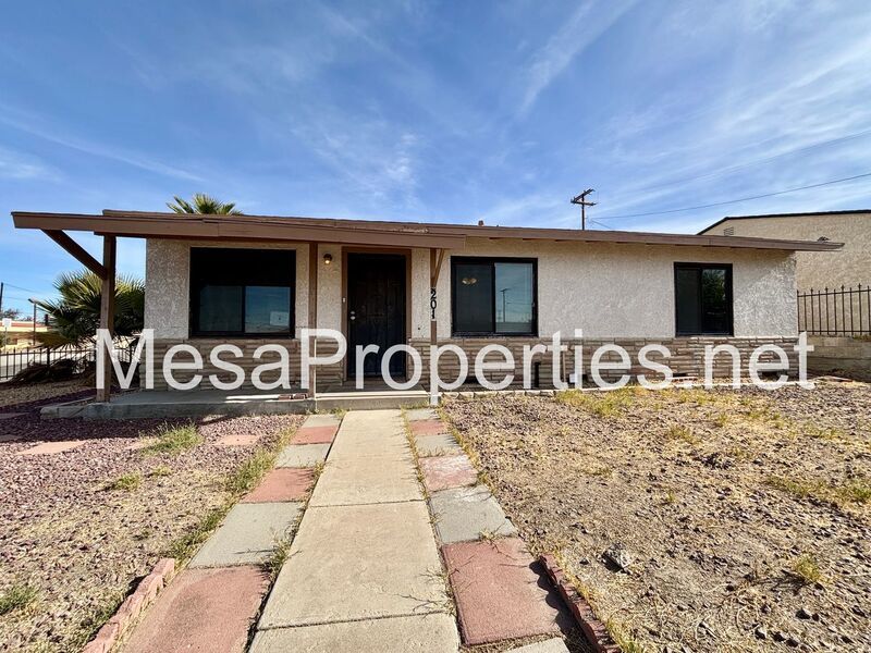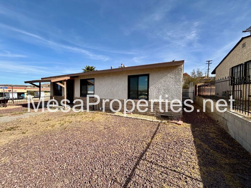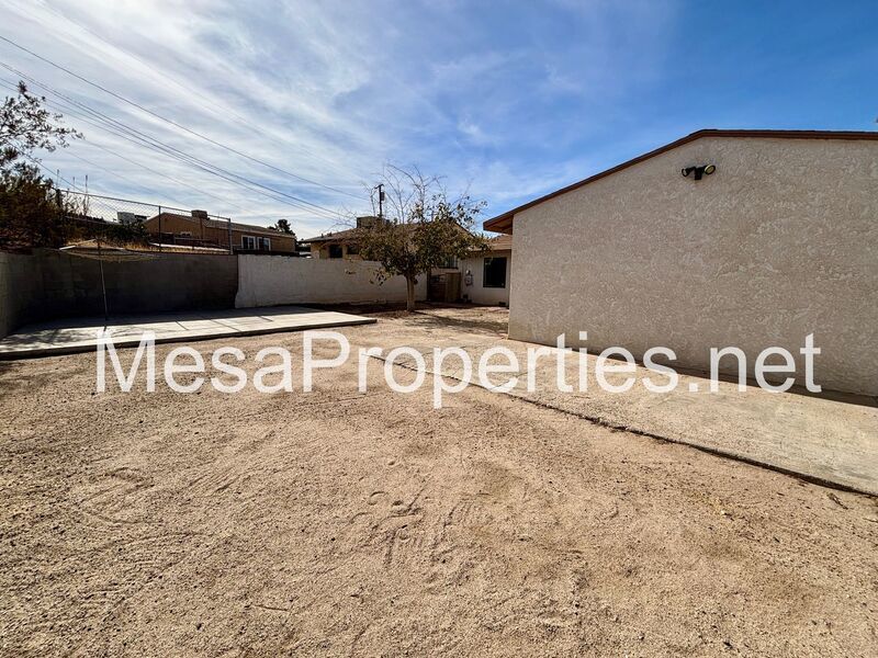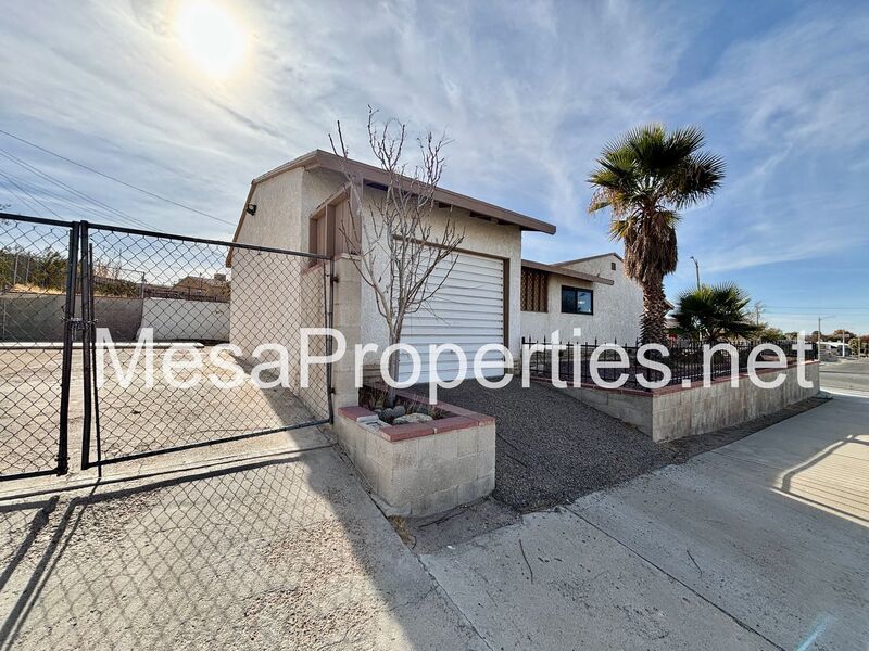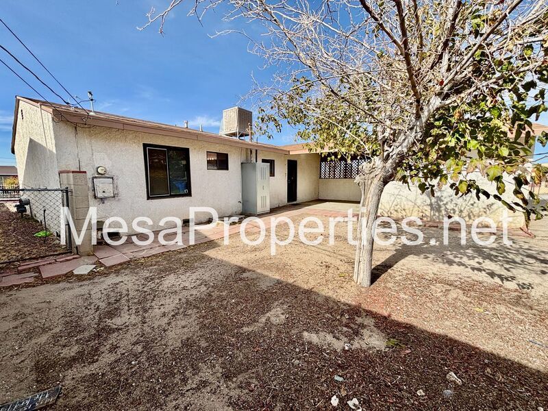 This is a fully fenced, both front yard and backyard home with 3 bedrooms, 1 bathroom. Big backyard with double gated entrance, big enough for a trailer. Has a single car detached garage that has a patio connecting garage and house. House has washer and dryer hookup in the hallway for your convenience. A ceiling fan in each of the rooms. Wall furnace for heat and an evaporative cooler on the roof.