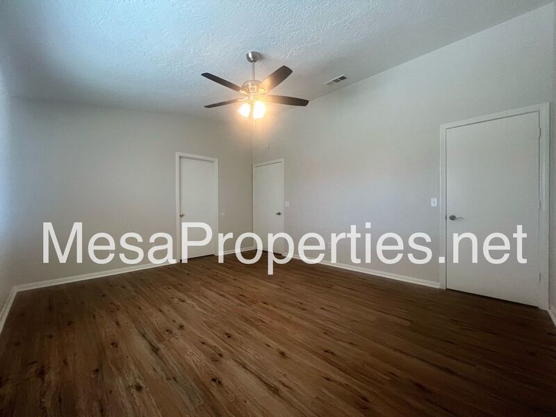 3 bedrooms are located on the east side of the house while one is on the West side. The 4 bedrooms all include ceiling fans and large windows. The master bedroom has its own bathroom and a large closet.