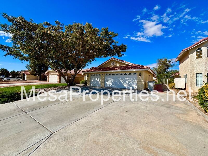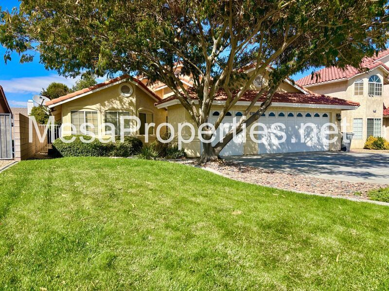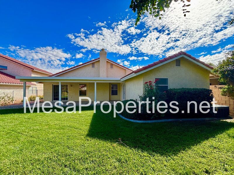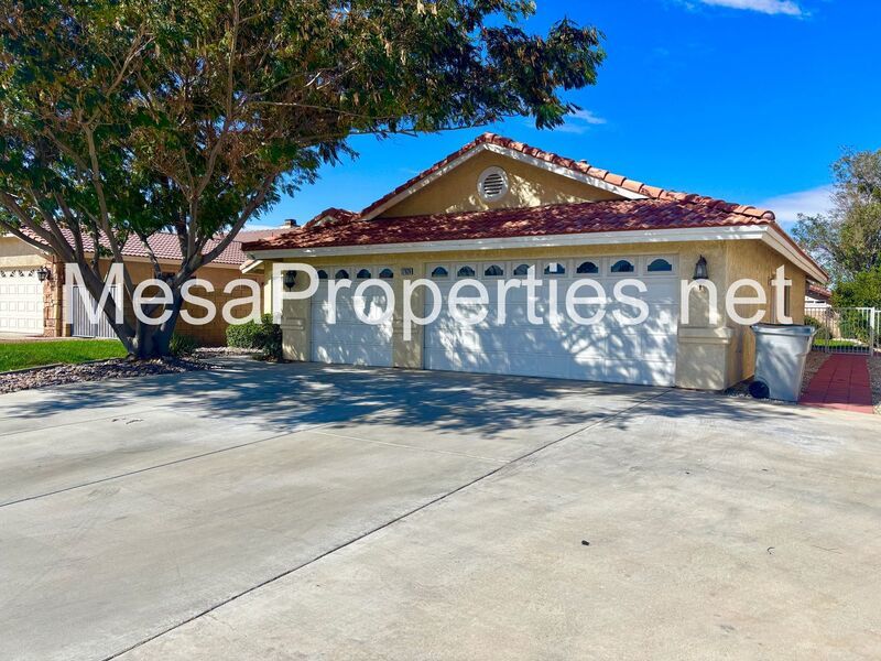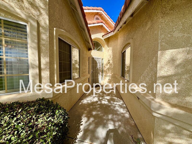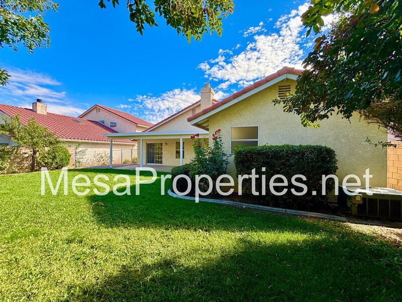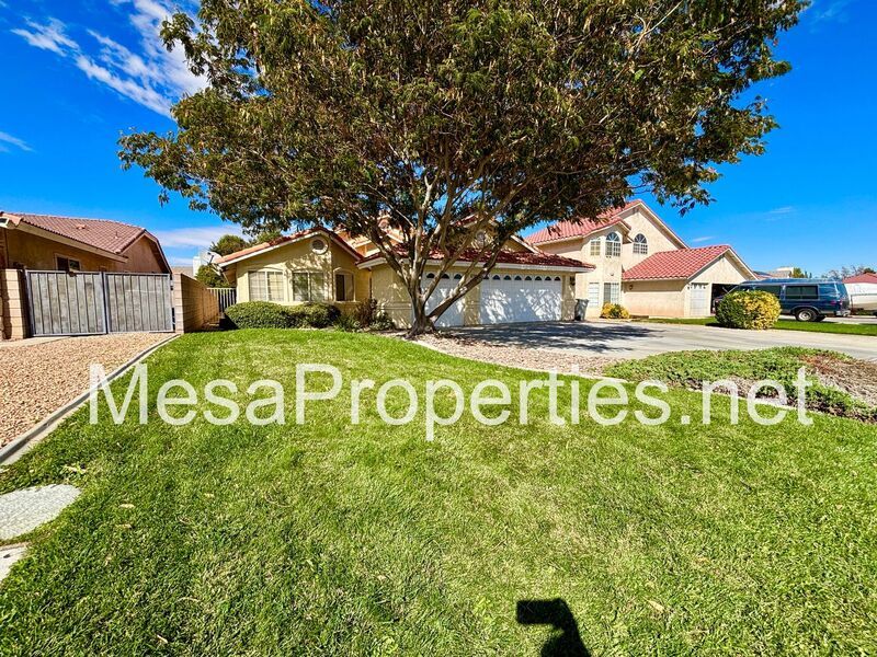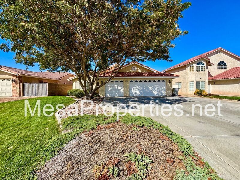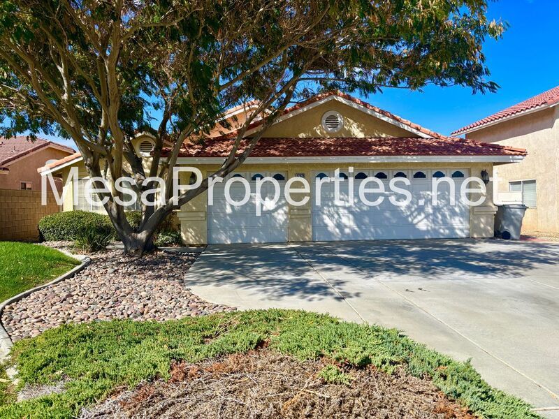 Welcome to this stunning Victorville home! The front yard boasts lush landscaping and a charming walkway leading to the entry.
